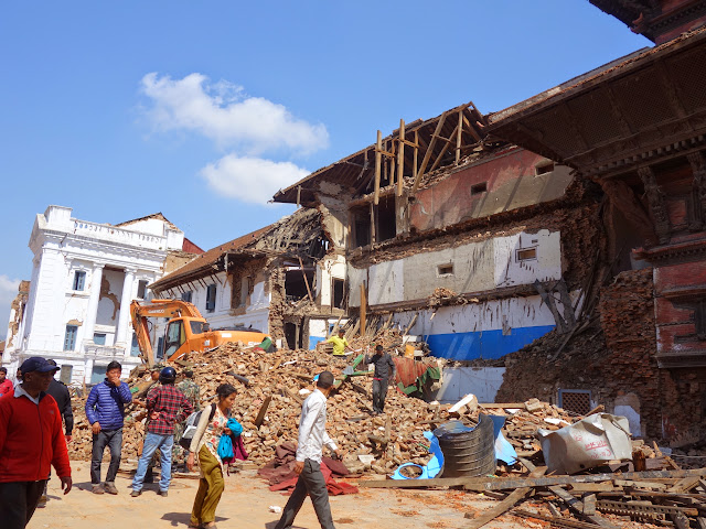 ประชาชนก็เดินดูเหตุการณ์ไปๆมาๆ ส่วนเรายืนดูอยู่ห่างๆพิจารณา บางอาคารก็ยังมีสภาพดีอยู่แต่ก็อาจจะมีรอยร้าว เช่น วิหารศิวะ-ปราวตี